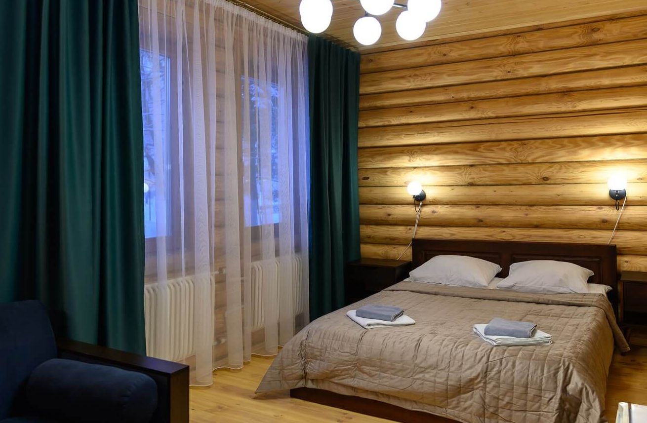 Здесь можно арендовать уютные коттеджи, загородные деревянные дома для отдыха, бунгало, избушку, номера в гостинице. Номера отеля оснащены качественной мебелью и техникой. Во всех номерах бесплатный Интернет (wi-fi), что позволяет беспрепятственно вести дела и оставаться на связи.
